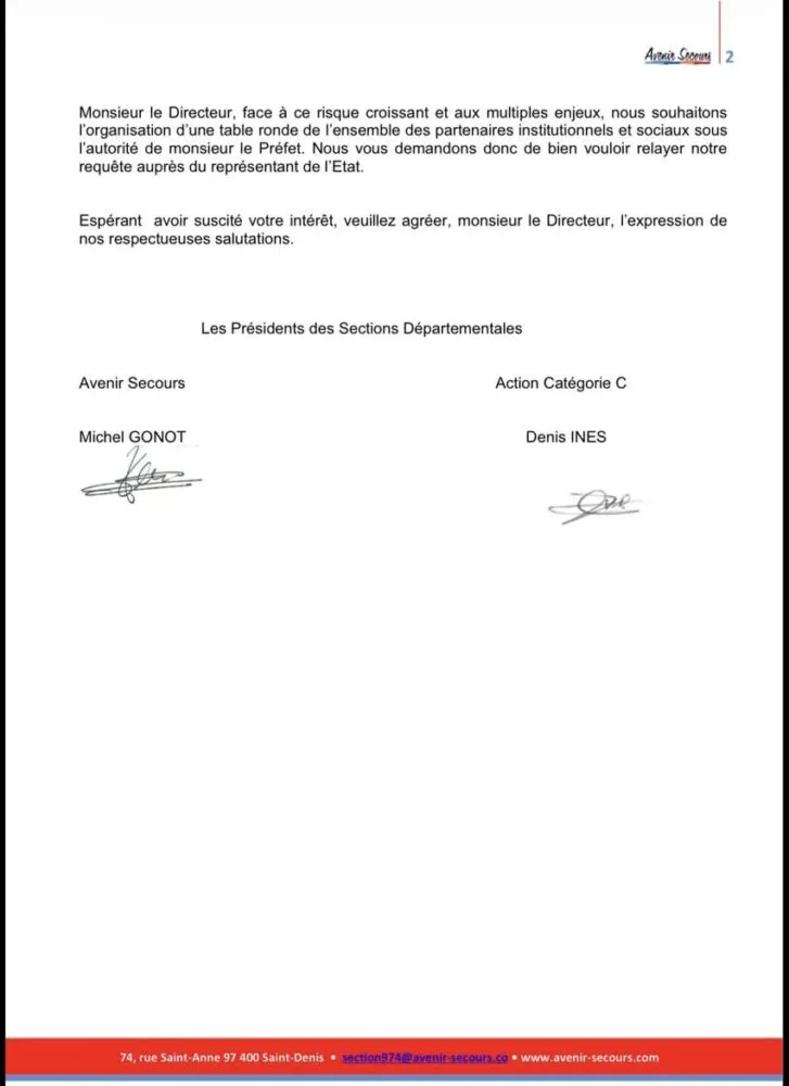 Dans leur conclusion, les deux présidents de section départementale expriment leur souhait que cette demande soit prise en compte et relayée auprès du préfet, afin qu’une mobilisation collective puisse être engagée à l’échelle de La Réunion.