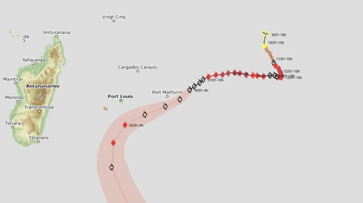 Selon les prévisions actuelles, la tempête devrait passer au sud-est de La Réunion, à une distance d’environ 300 kilomètres, entre lundi soir et mardi matin. Cette trajectoire, jugée fiable, signifie que les conditions les plus dangereuses du phénomène ne concerneront pas directement l’île.
