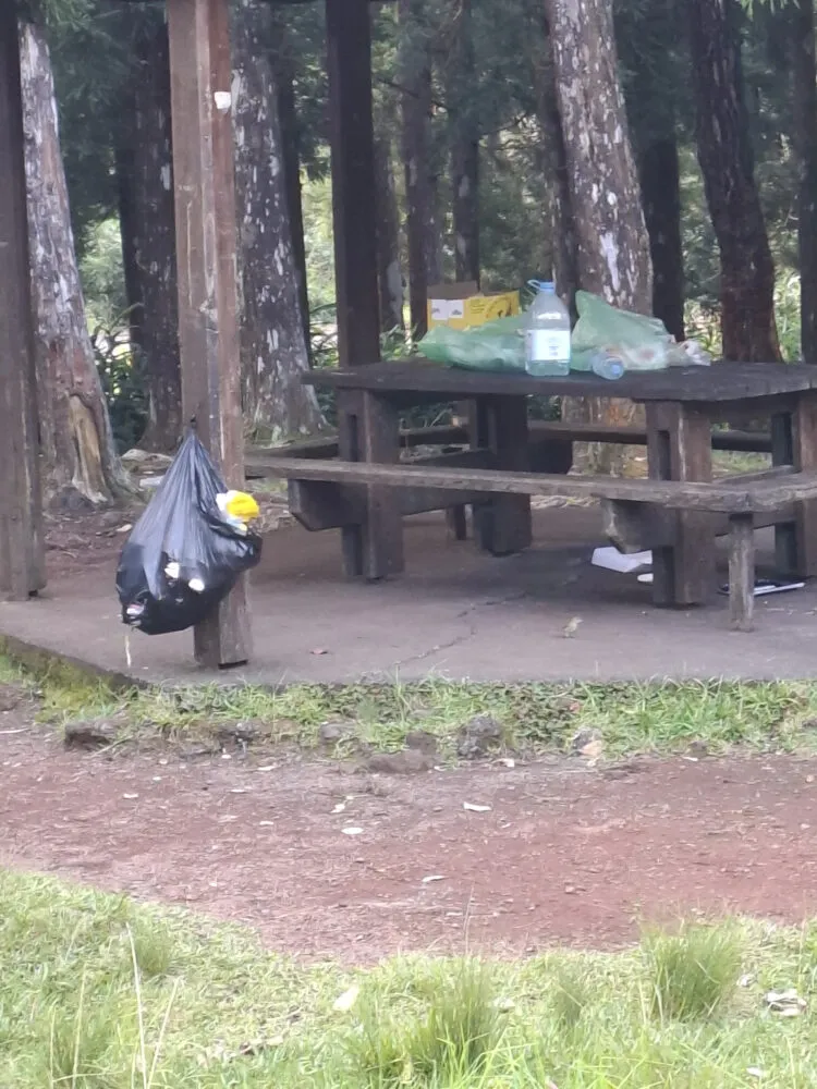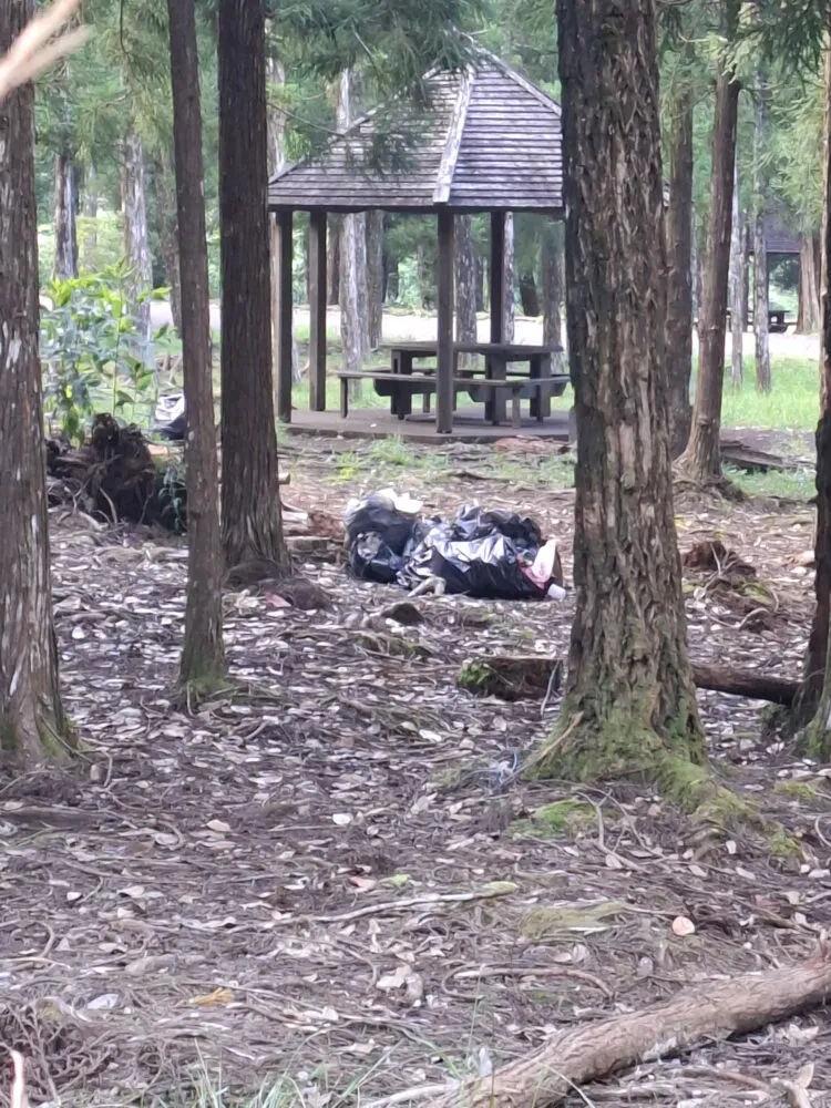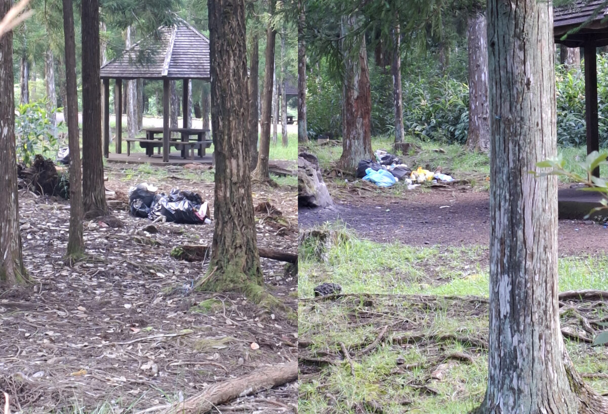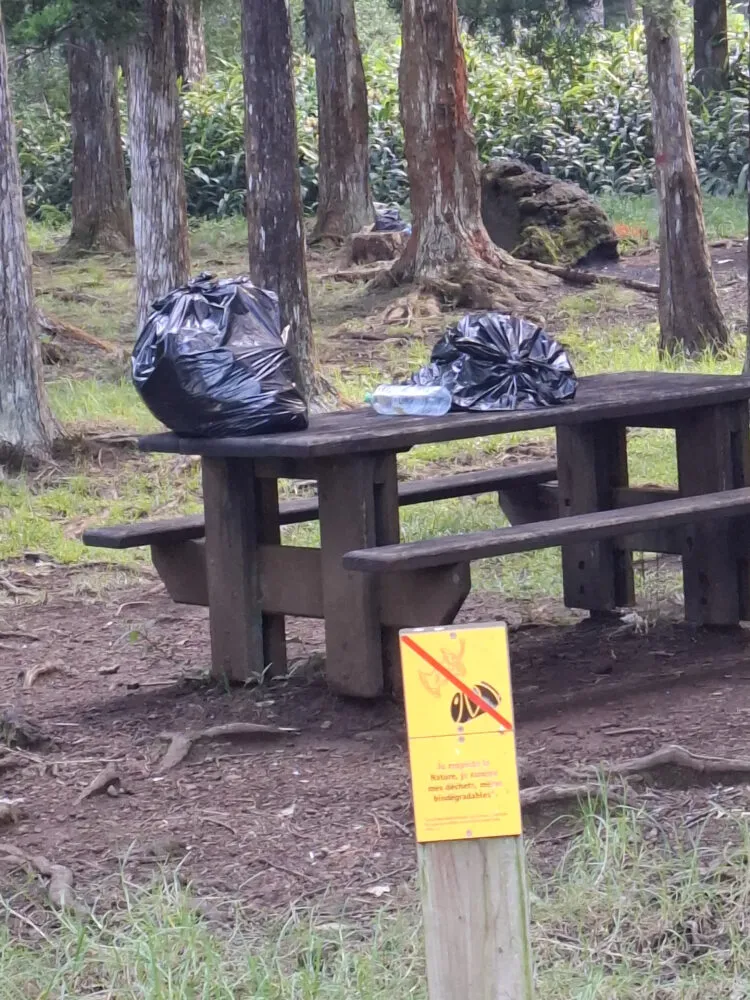 Des sacs-poubelle abandonnés au pied des arbres, des bouteilles en verre et en plastique laissées sur les tables, des déchets éparpillés en pleine nature. Les images parlent d’elles-mêmes.