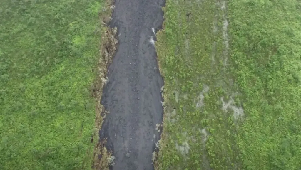 Piton de la Fournaise : l’éruption se poursuit, mais la coulée de lave marque une pause à 660 mètres d’altitude