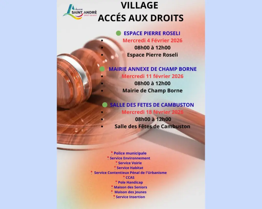 La Ville de Saint-André organise en février 2026 un Village Accès aux Droits, pensé pour…