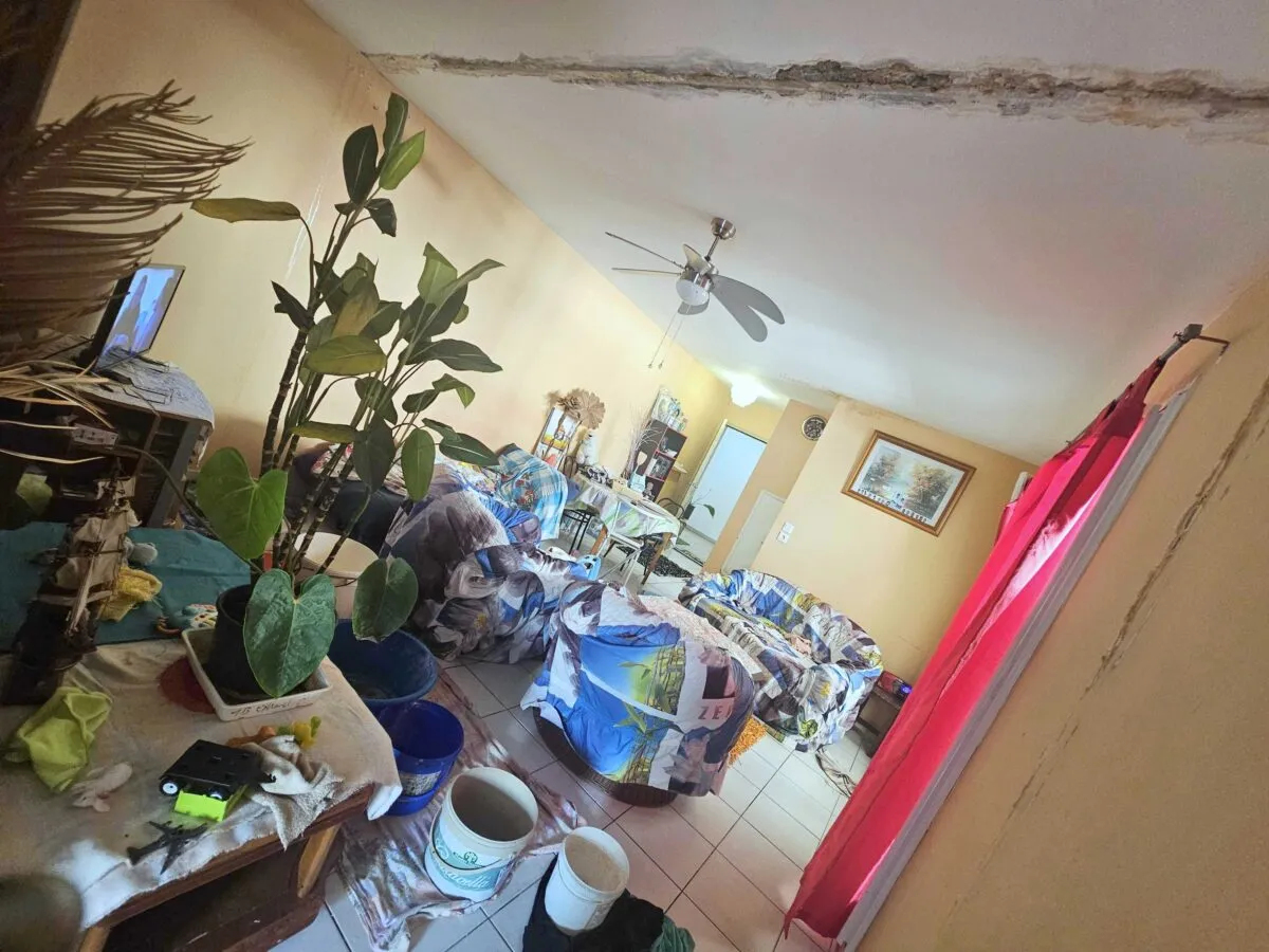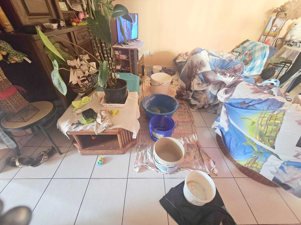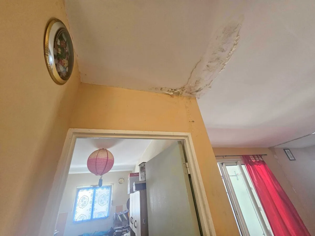 Depuis des mois, les locataires vivent avec la peur au ventre. Dans l’appartement 5, la situation est devenue insupportable. Le plafond de la cuisine et celui du salon fuient sans discontinuer. Des seaux jonchent le sol pour tenter de limiter les dégâts, tandis que l’humidité ronge les murs et fait gonfler les portes au point qu’il devient presque impossible de fermer son propre logement à clé.