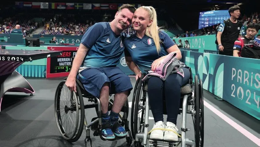 Flora Vautier incarne un parcours marqué par la résilience. Enfant, elle rêvait de pratiquer la gymnastique rythmique et sportive (GRS). À l’âge de 10 ans, un accident de la route la rend paraplégique. Elle se tourne alors vers le para tennis de table, discipline dans laquelle elle simpose progressivement au plus haut niveau. De son côté, Florian Merrien est atteint dune maladie touchant la moelle épinière et se déplace en fauteuil roulant depuis l’âge de 18 mois. Très tôt, il développe un rapport singulier à la discipline, reconnu pour la qualité de son toucher de balle et sa lecture du jeu, qui lui permettent de rivaliser avec les meilleurs. Médaillé paralympique, il met aujourdhui son parcours et son expérience au service dactions de sensibilisation auprès des jeunes publics.
