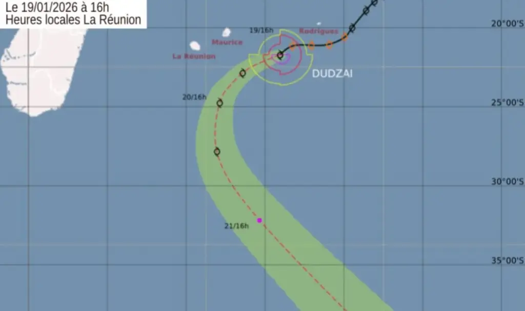 Selon les services météorologiques, DUDZAI circule à environ 350 kilomètres au sud-est de l’île Maurice et pourrait connaître une intensification progressive au cours des prochaines 24 heures, une évolution vers le stade de cyclone tropical dès mardi n’étant pas exclue. Toutefois, pour La Réunion, le scénario privilégié reste celui d’un passage suffisamment éloigné, limitant tout risque d’impact direct.