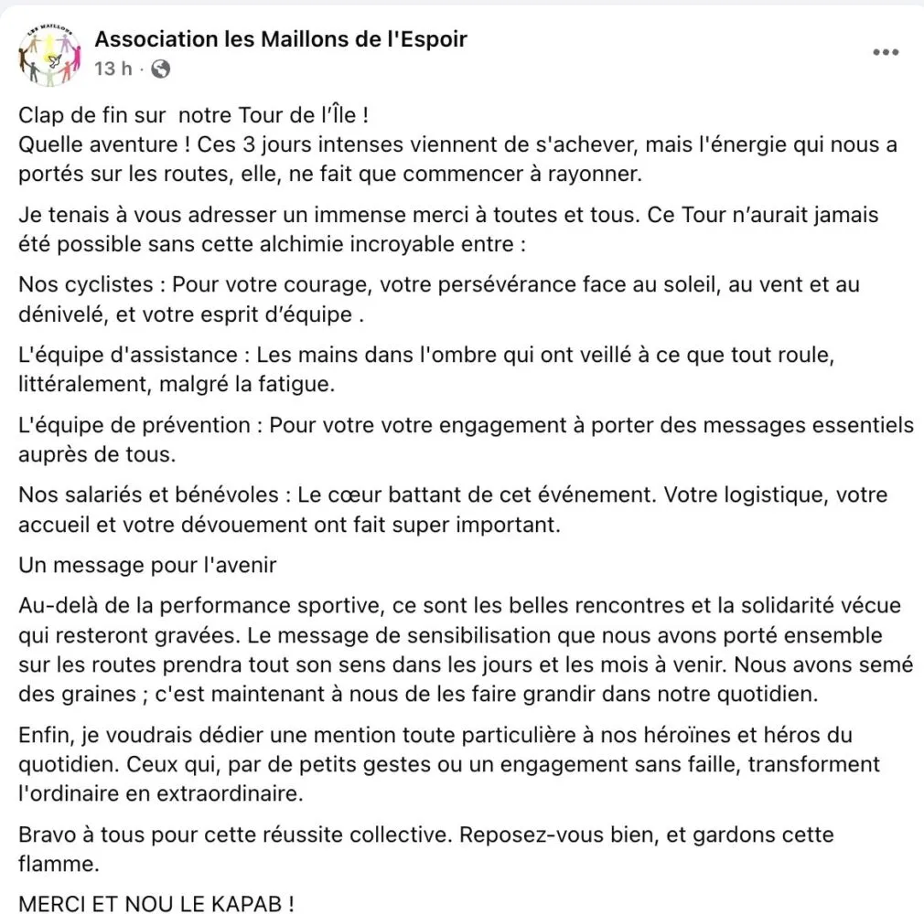 L’association Les Maillons de l’Espoir a organisé un tour de l’île à vélo, un événement sportif et engagé pour sensibiliser à la lutte contre l’alcoolisme.