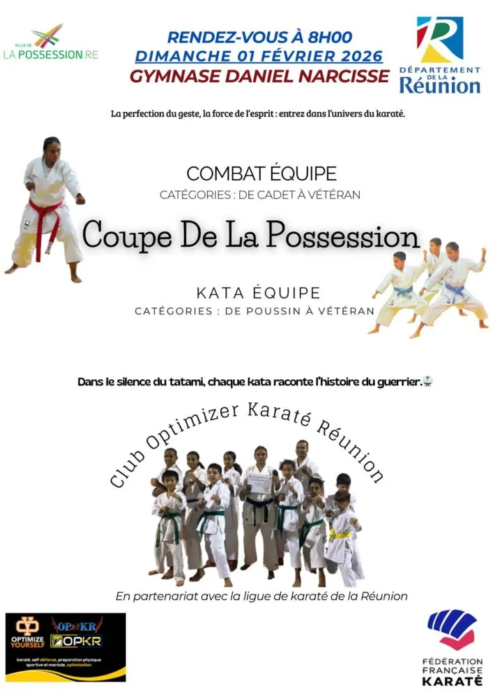 La commune de La Possession accueillera ce dimanche 1er février 2026 la Coupe de La Possession de karaté, une compétition ouverte aux pratiquants de tous âges et de tous niveaux. Le rendez-vous est fixé à 8 heures au gymnase Daniel Narcisse, avec une journée placée sous le signe de la rigueur, de la discipline et de l’esprit martial.