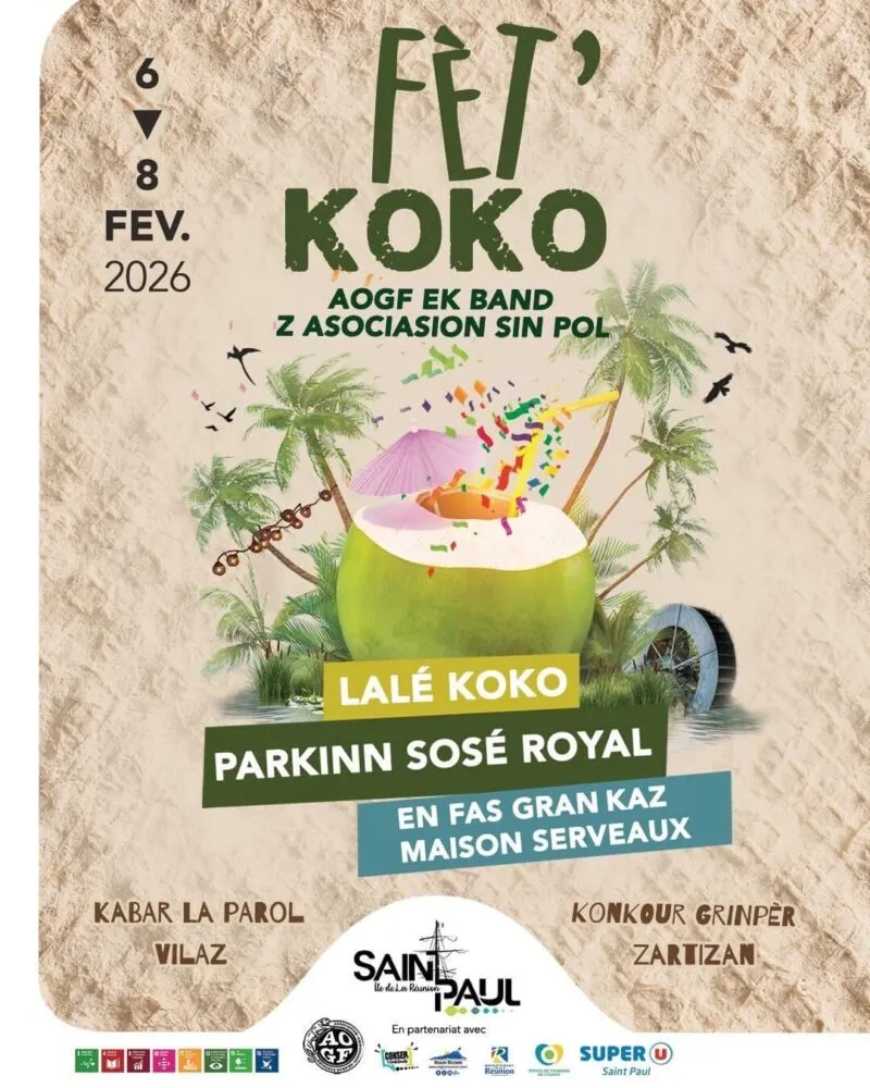 Saint-Paul vit depuis ce vendredi un week-end festif et culturel avec la Fet’ Koko, un événement incontournable dédié au coco, symbole fort du patrimoine réunionnais. La manifestation se déroule du vendredi 6 au dimanche 8 février, à l’Allée des Cocos – Parking de la Chaussée Royale, en face de la Maison Serveaux.