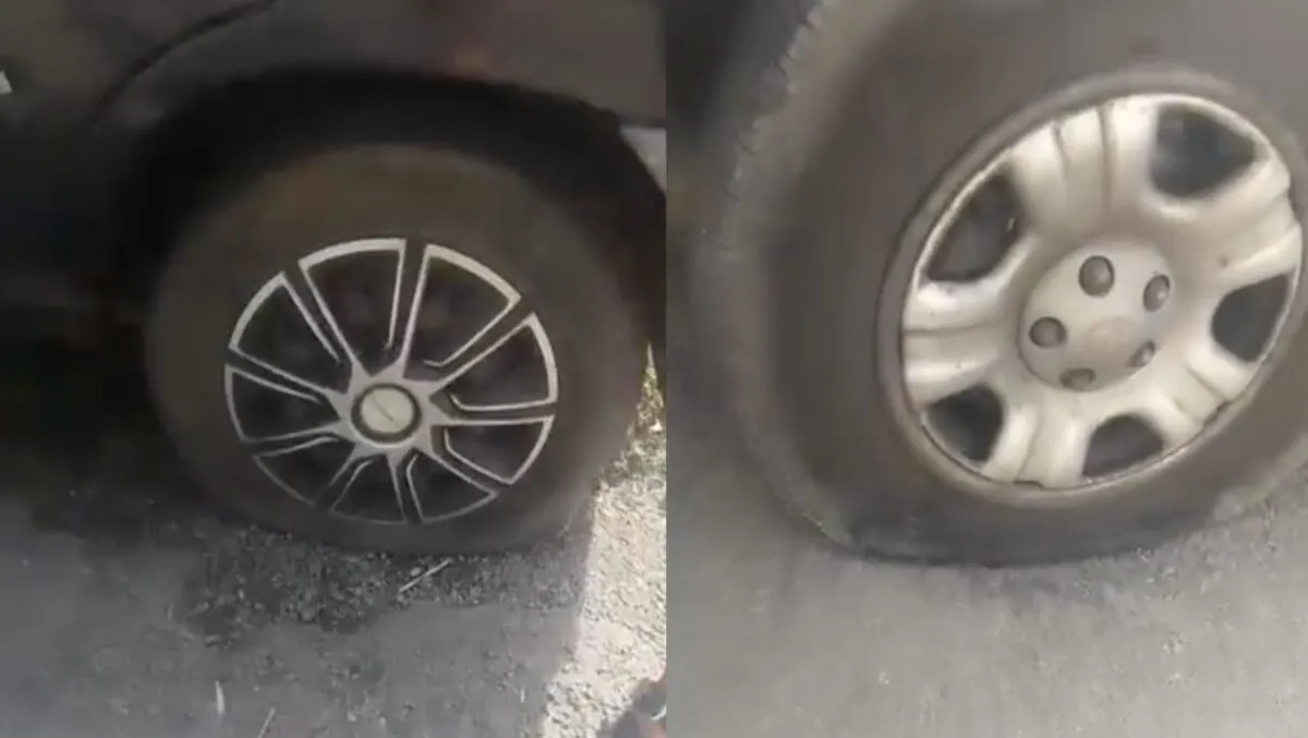 Aux premières lueurs du jour, plusieurs propriétaires ont découvert leurs pneus crevés sur plusieurs voitures stationnées le long du Chemin Bois de Fer. Les dégâts semblent avoir été causés intentionnellement, les crevaisons présentant toutes des perforations régulières, typiques d’une lame introduite pour endommager le pneu volontairement.