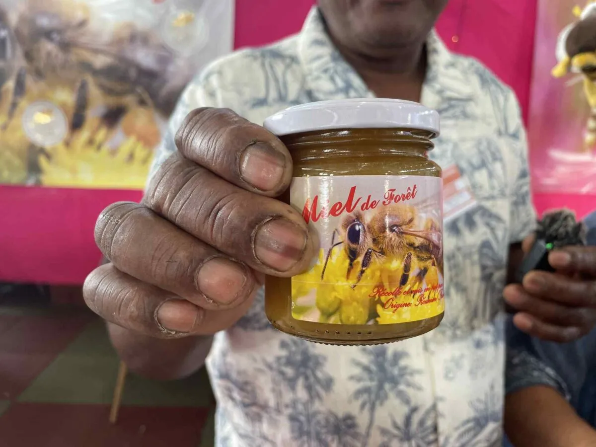 Sur son stand, un miel intrigue immédiatement : le miel de corce blanc, aussi surnommé le miel des cyclones. Issu d’un arbre endémique de La Réunion, le corce blanc ne fleurit qu’après des événements climatiques extrêmes.