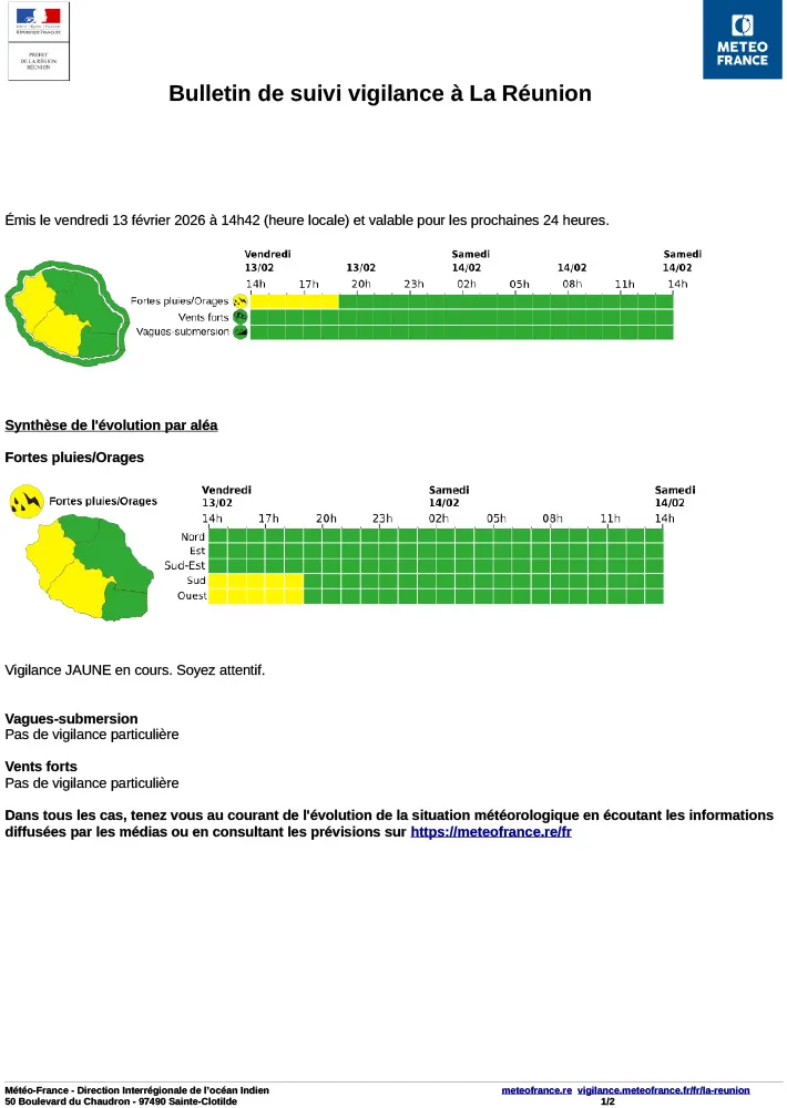 Une vigilance jaune pour fortes pluies et orages est actuellement en cours dans le Sud et l’Ouest du territoire. Selon Météo-France, cet épisode reste valable jusqu’à 19 heures ce vendredi.