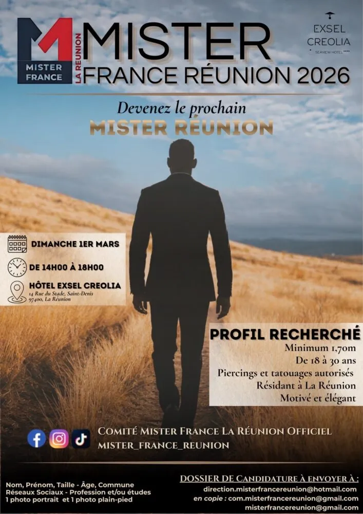 Pour tenter votre chance, contactez le comité via leurs réseaux sociaux ou envoyez votre dossier à : direction.misterfrancereunion@hotmail.com.