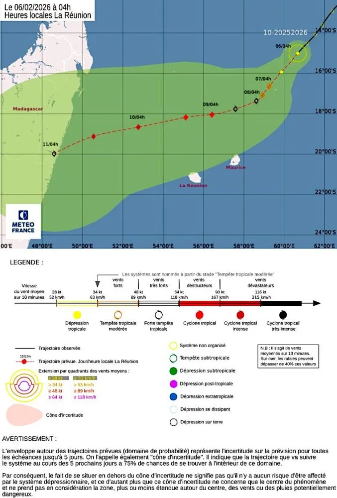 Bulletin du 06 février à 05h00 locales de La Réunion (04h00 locales de Mayotte) :
