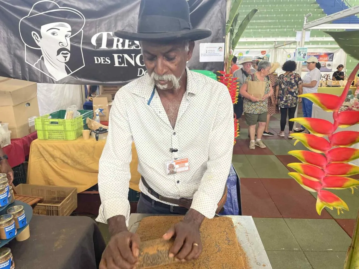 Impossible de parler de gastronomie réunionnaise sans évoquer le massalé malbar. Sur son stand « Trésor des Engagés », un artisan partage sa vision d’un massalé authentique, préparé dans le respect des gestes d’antan. Cumin, graines de moutarde, fenugrec, caloupilé : chaque ingrédient est torréfié avant d’être écrasé à la pierre.