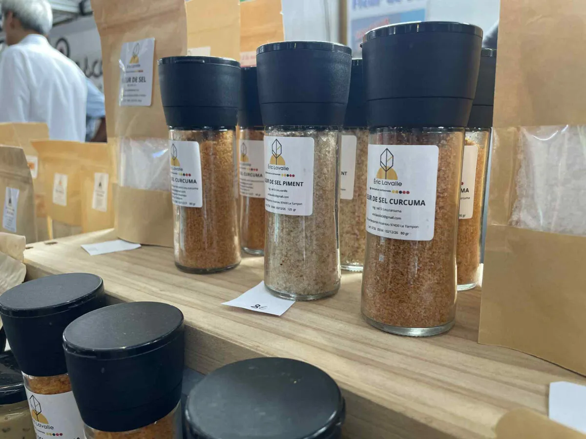 Sur son stand, on retrouve la fleur de sel de Saint-Leu, un incontournable de l’île, ainsi que des mélanges originaux à base de riz et cacahuètes torrifiées, agrémentés de fleur de sel et de sésame. Les curieux peuvent également goûter au sirop de flamboyant, déjà devenu un best-seller de l’édition 2026, et à une moutarde au miel, parfaite pour sublimer plats et apéritifs.