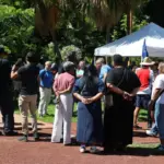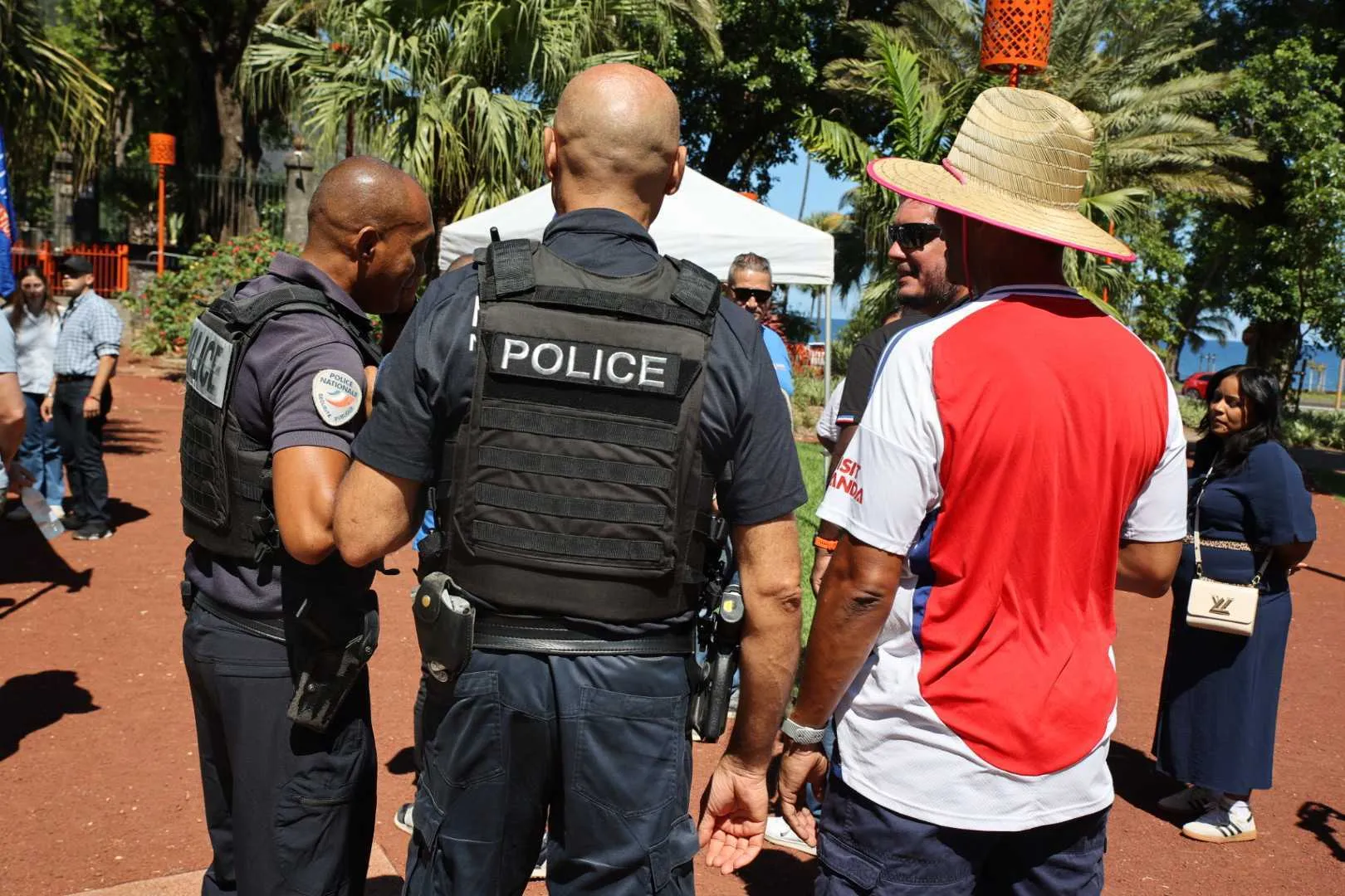 Plus de 80 personnes sont présentes sur place, parmi lesquelles des policiers, des citoyens, des représentants associatifs ainsi que plusieurs élus. La maire de Saint-Denis, Ericka Bareigts, a notamment fait le déplacement, aux côtés d’autres élus locaux et de la sénatrice Audrey Belim.