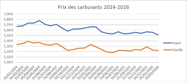 Supercarburant (€/litre) 1,56 € 1,51 € -3,21% -0,05 €