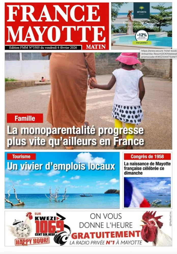 À Mayotte, l’actualité est dominée par les questions sociales et de mobilité. France Mayotte Matin revient sur la reprise progressive du trafic de la barge, essentielle pour les déplacements quotidiens, tandis que les opérations de recensement et de contrôle débutent sur le territoire. La progression de la monoparentalité et les enjeux éducatifs figurent également au cœur des préoccupations locales.