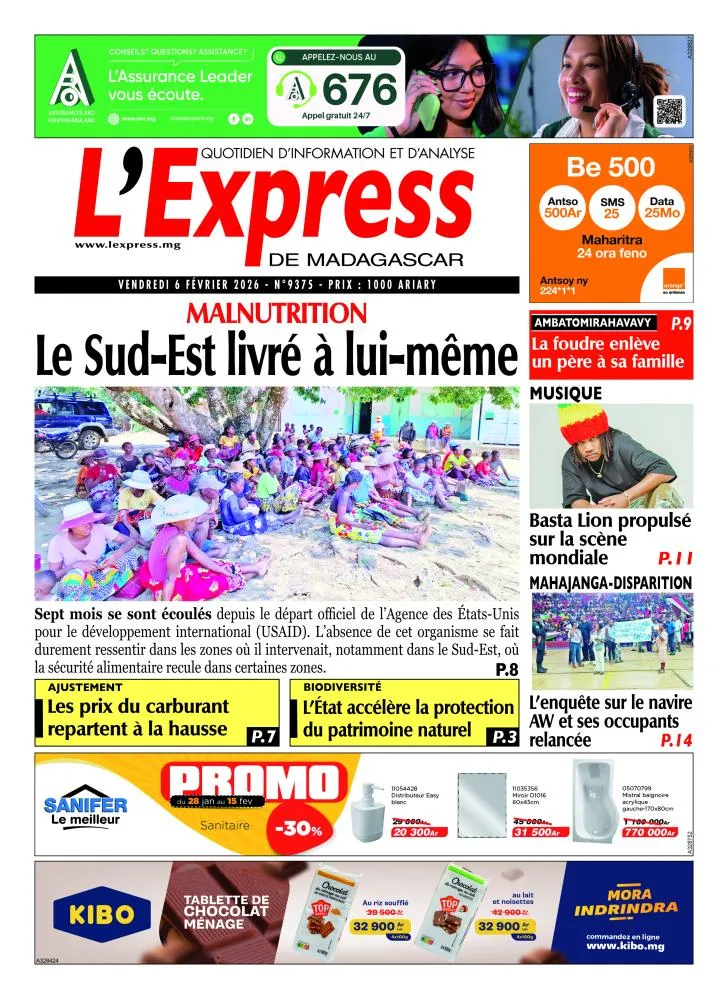 À Madagascar, L’Express consacre sa une à la situation humanitaire dans le Sud-Est, confronté à une insécurité alimentaire persistante. Le quotidien aborde aussi les conséquences économiques, avec la hausse des prix du carburant, et les défis environnementaux liés à la protection de la biodiversité.