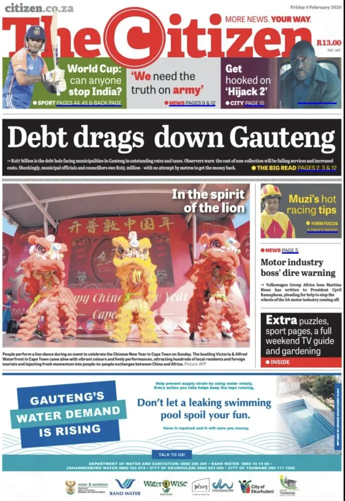 En Afrique du Sud, The Citizen alerte sur la situation financière critique de la province du Gauteng, plombée par l’endettement des municipalités. Le quotidien aborde aussi les tensions économiques nationales et les enjeux de gouvernance locale, dans un contexte de pression croissante sur les services publics.