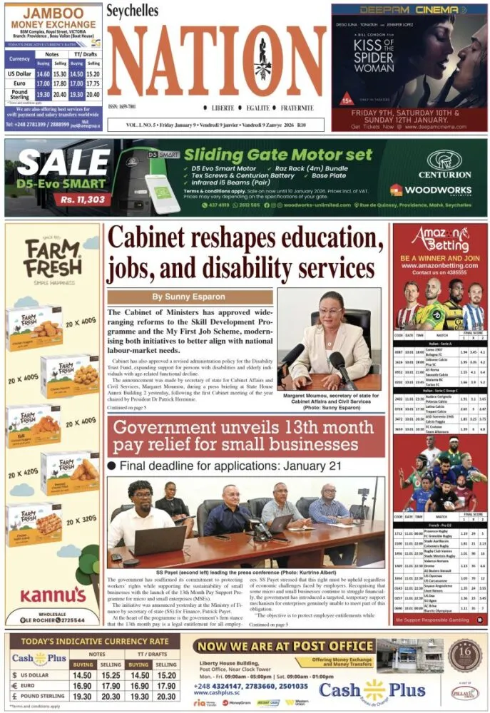 La Nation met en avant un remaniement gouvernemental axé sur l’éducation, l’emploi et les services aux personnes en situation de handicap. Le gouvernement annonce également une aide sous forme de 13e mois de salaire pour soutenir les petites entreprises, avec une date limite fixée pour les demandes.
