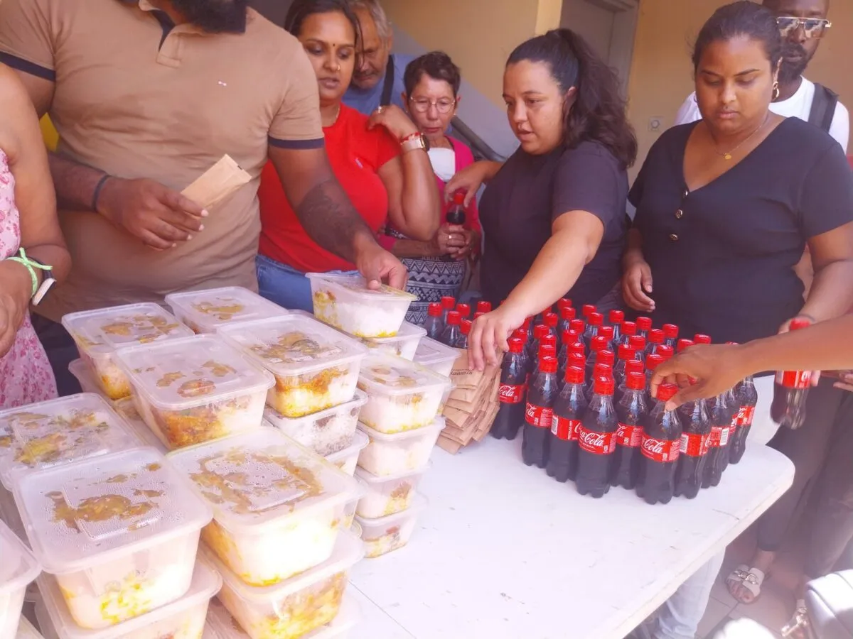 Les repas proposés mettaient à l’honneur la cuisine locale, avec au menu un cari coq combava, du rôti de coq et un rougail saucisse. Une boisson était également offerte à chaque bénéficiaire, apportant un moment de réconfort à celles et ceux qui en ont le plus besoin.