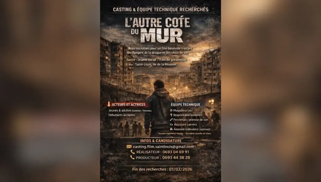 Tourné à Saint-Louis, le film s’ancre pleinement dans le territoire réunionnais tout en abordant des problématiques universelles. L’Autre Côté du Mur se positionne comme un outil de prévention, mais aussi comme une œuvre humaine, tournée vers l’espoir et la responsabilité individuelle.