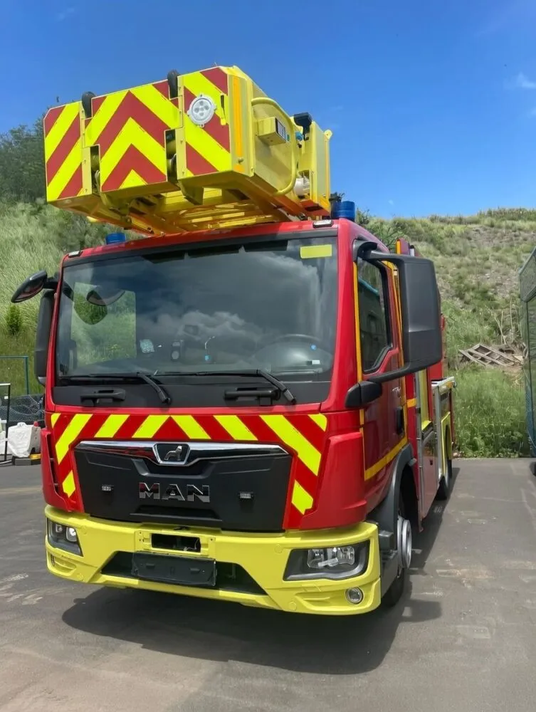 Construit sur un châssis MAN, cet engin est équipé d’une échelle aérienne fournie par le constructeur français Riffaud, spécialiste reconnu du matériel incendie. Ce type de véhicule, appelé échelle pivotante automatique (EPA), est principalement utilisé pour les interventions en hauteur, notamment lors d’incendies d’immeubles, de sauvetages de personnes ou de reconnaissances aériennes. Regardez cette photo publiée sur la page Facebook syndicale de la FSU : https://www.facebook.com/fsupompier.reunion