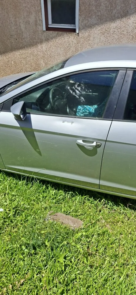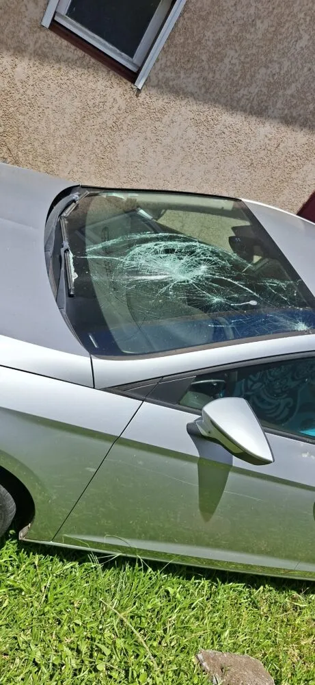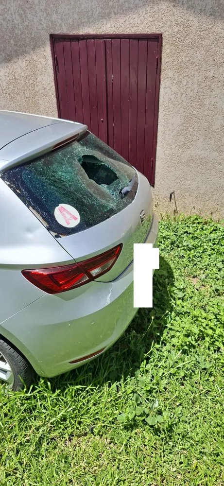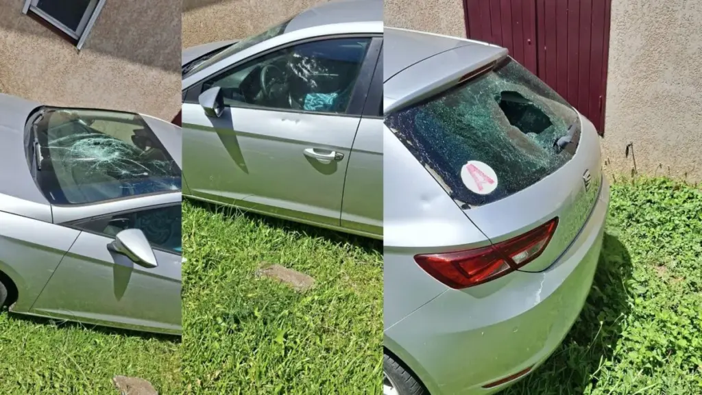 Les images montrent des jets de galets, visant non seulement le véhicule — dont le pare-brise, la lunette arrière et une vitre latérale ont été brisés — mais également la maison attenante, qui a elle aussi subi des dégradations.